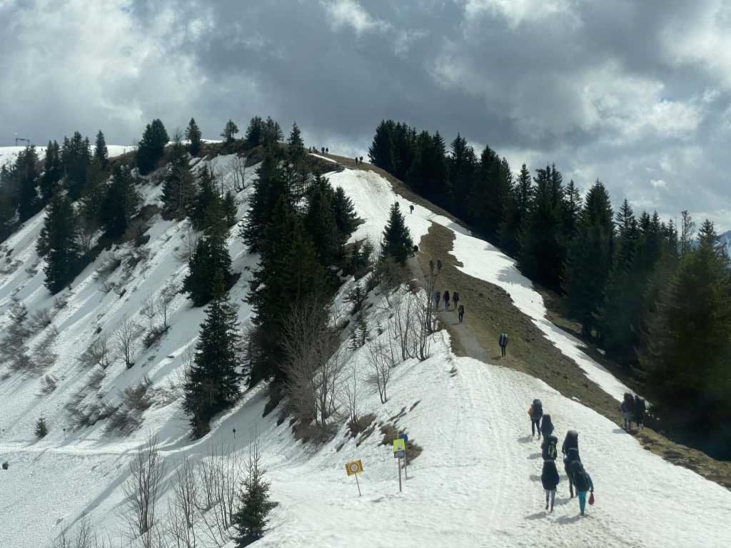 Kirándulásnak is tökéletes hely Bregenz környéke, gyönyörű zöld alpesi legelők, erdők, hatalmas faházak mindenütt. A tehenek májusig még otthon laknak, de ott is készítik a sajtot, a települések telis-tele háztáji termékek önkiszolgáló becsületkasszás boxaival, így a tejtermékeket, tojást érdemes innen beszerezni, csak fontos, hogy pontosan kell bedobni az árát, visszajáró nincs. Amúgy a busszal pikk-pakk haza jutottam, a QR kódot el sem kérte a bácsi, itt mindenre azt mondják: “Passt.” 🙂